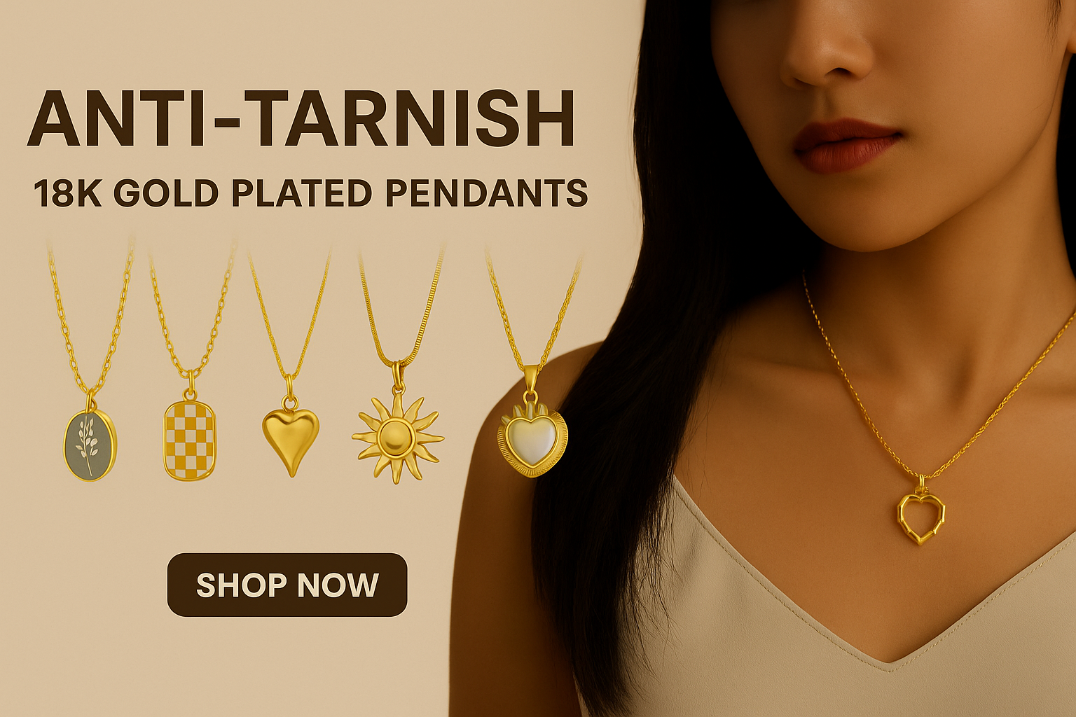 Elegant Bamboo Heart Gold Pendant Necklace | Anti-tarnish